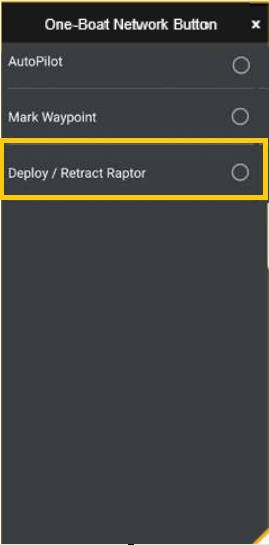 5. When the motor has reached its highest trim limit, the Prop will be locked out and the Trim Up option will be disabled. The Prop will stay locked out even when the Deployment Menu has closed. Trim the motor down and out of the Prop Lockout zone to restore functionality.