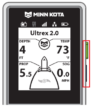 - INSTINCT/ULTERRA - Only visible when an Ulterra, Ulterra QUEST & RT Instinct QUEST motor is connected. Use to stow and deploy the motor and adjust the trim.