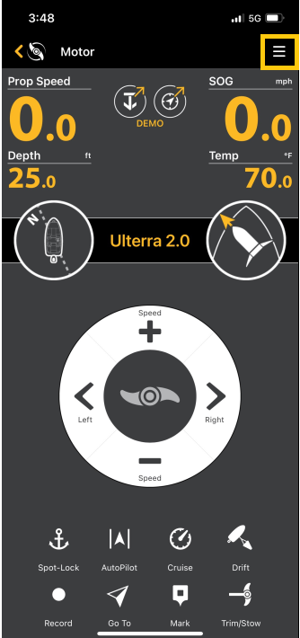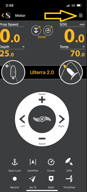 - If the trolling motor needs to be adjusted, locate the Return button on the top-left corner of the app screen. Tap the Return button three times until the Motor app home screen displays.