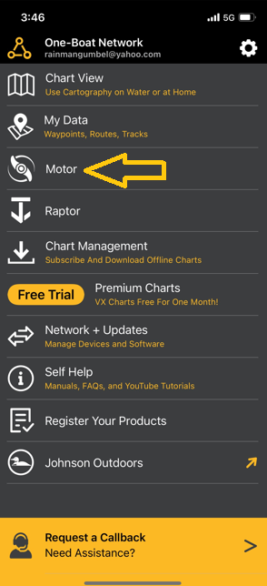 - From the OBN home screen, tap the Motor menu. The Motor menu opens the Motor app home screen