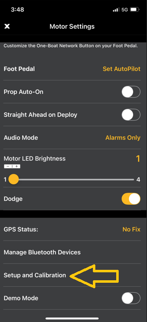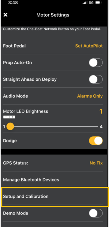 - In the Motor Settings menu, find and tap Setup and Calibration.
