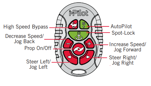 If your motor is Spot-Lock Jog enabled, the Speed Down (backwards), Speed Up (forward), Steer Right and Steer Left buttons function change to Jog the boat while in Spot-Lock. These buttons will then move your motor in 5' increments