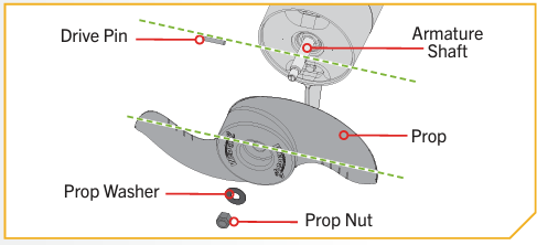 - Disconnect the motor from all sources of power prior to changing the Prop.