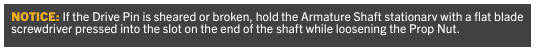 - Turn the old Prop to horizontal and pull it straight off. If the Drive Pin falls out, push it back in.