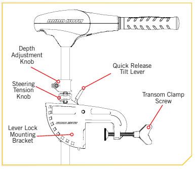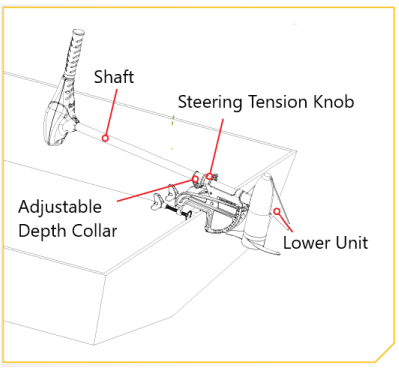 NOTE: The Depth Collar and steering tension should be secured against the bracket when transporting the motor to prevent accidental deployment.