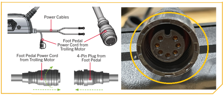 Note: Using the correct cable connection, extension cable, or adapter cable is critical. Using the incorrect cable connection can result in damage to cable pins or possibly disabling trolling motor functions.