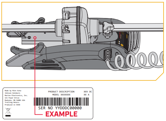 On the Kayak Terrova, the serial number is located inside the mount near the motor rests. The serial number can be seen when the motor is stowed.