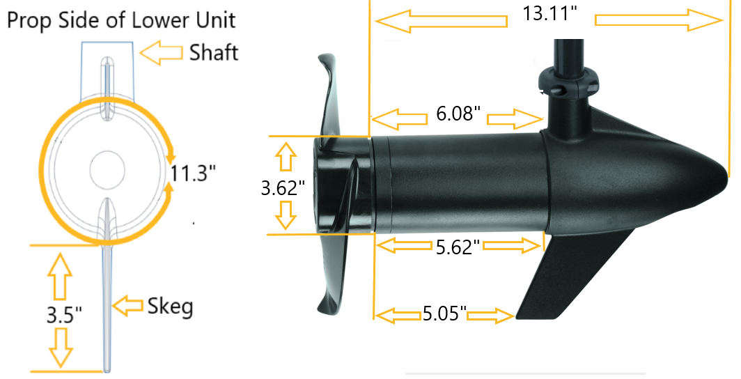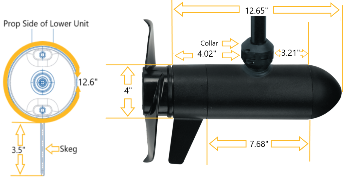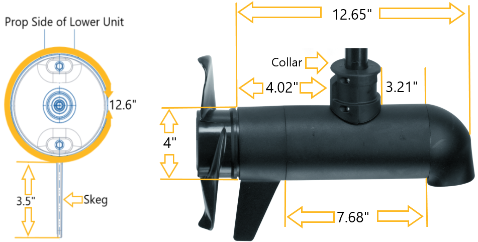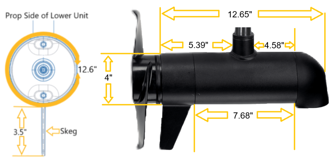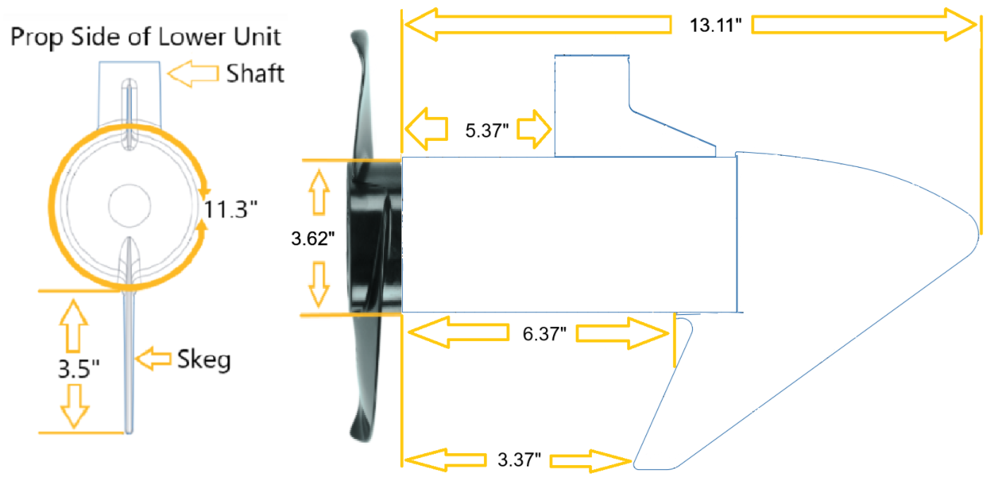 3.62" Diameter Riptide Lower Unit Dimensions