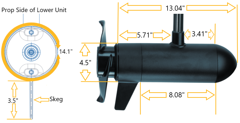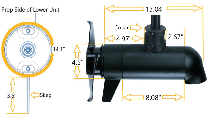 4.5" Diameter Riptide Lower Unit Dimensions