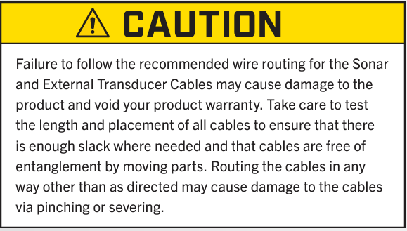 - Leave enough slack in the Transducer Cable between the Lower Unit and the Control Head to allow the motor to properly stow and deploy.