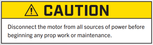 - Tighten prop nut 1/4 turn past snug (25-35 inch lbs.).