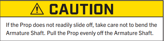 - CAUTION: Over tightening can damage prop and bend the drive pin.