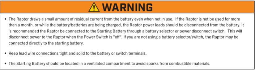 A Raptor will operate with a Lithium Ion battery. Avoid connecting the Raptor to the same batteries that a trolling motor or other accessories are connected to.