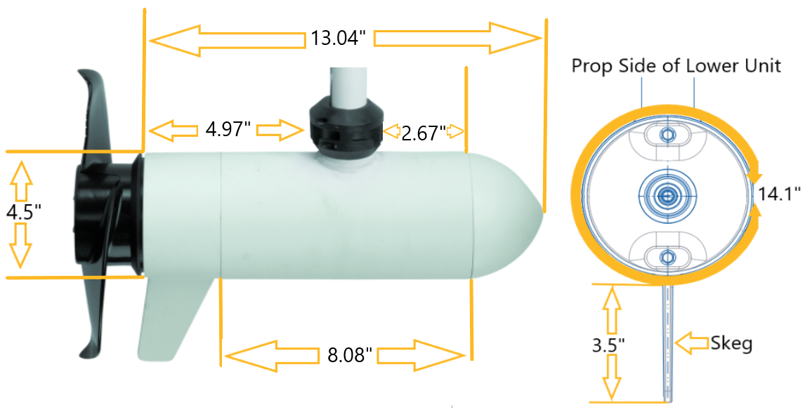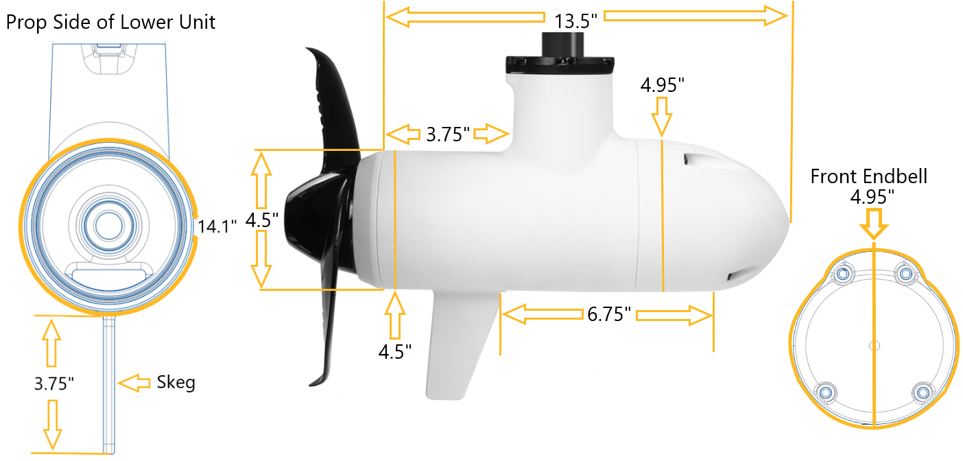 4" Diameter 80 Thrust Brushed Lower Unit Dimensions