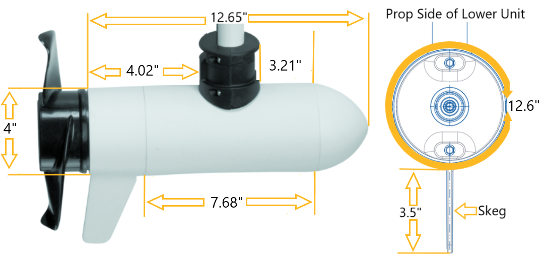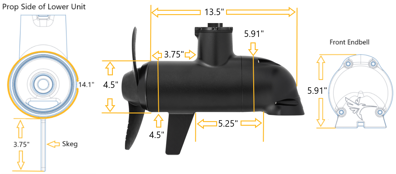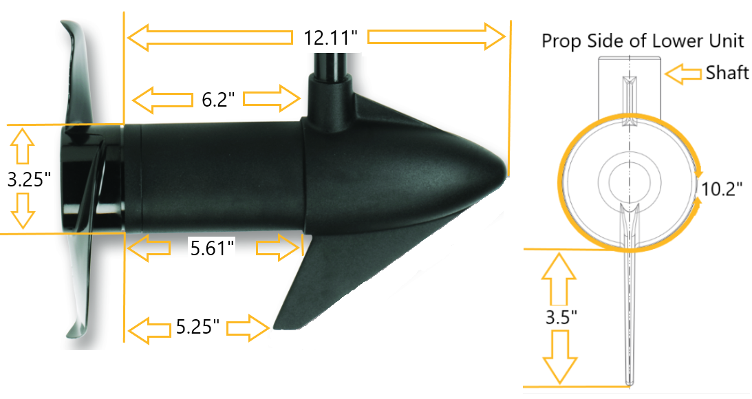 3 1/4" 45 LB, 40 LB, and 30 LB Thrust Lower Unit Dimensions
