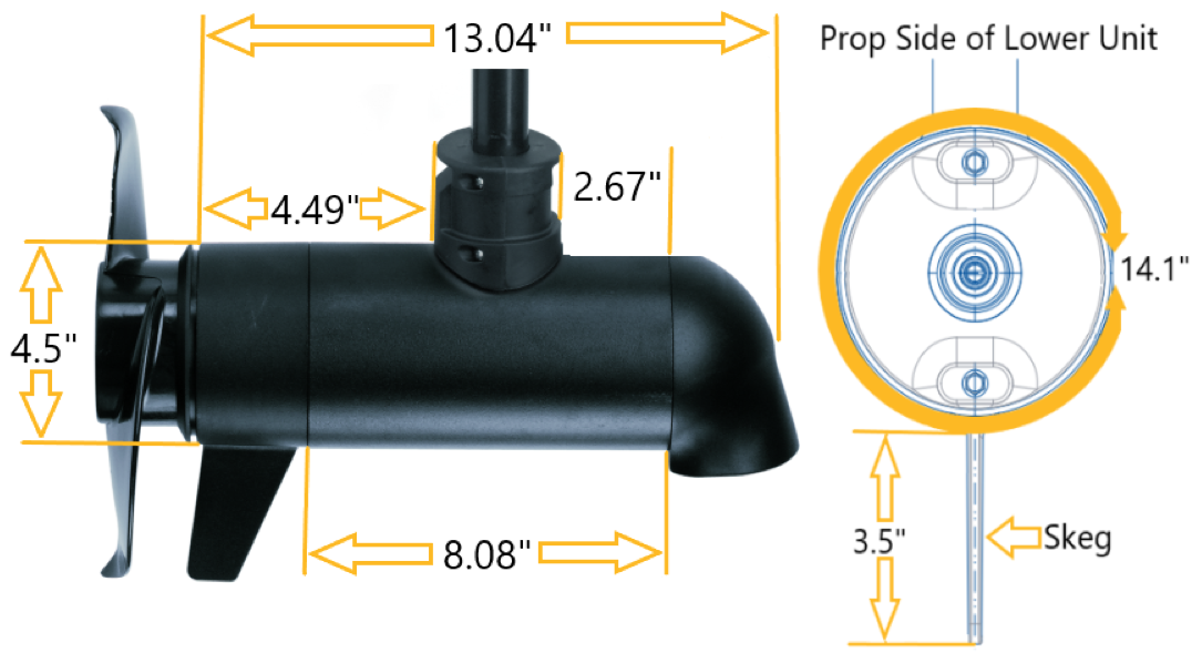 4.5" Diameter Riptide QUEST 90/115 Lower Unit Dimensions