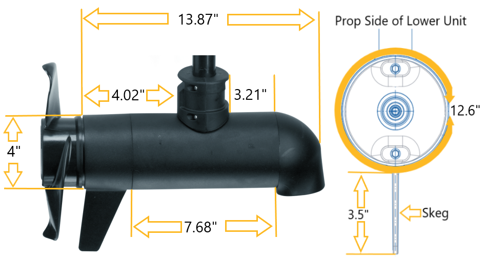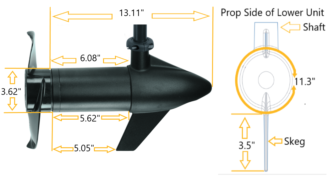 3 5/8" Diameter 70 LB and 55Lb Thrust Lower Unit Dimensions