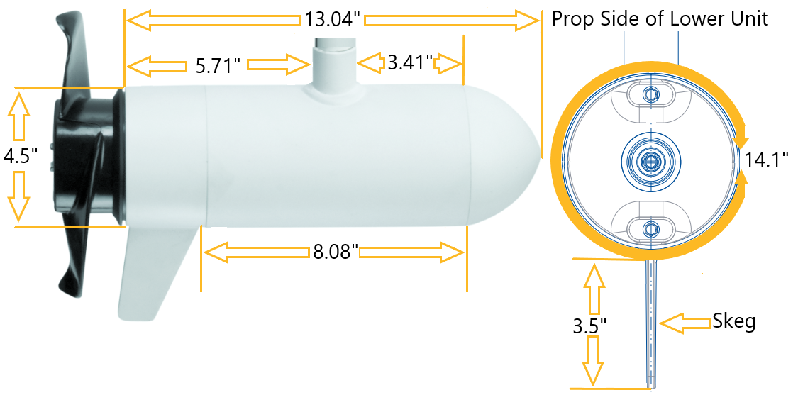 3 1/4 Demeter 45 LB and 30 Lb Thrust Lower Unit Dimensions